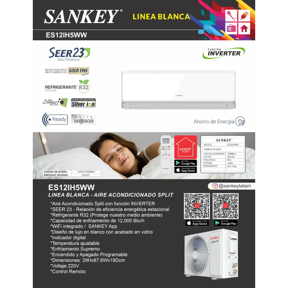 A/AC INVERTER 18BTU WIFI BLANCO ESPEJO SEER 22 GAS R32